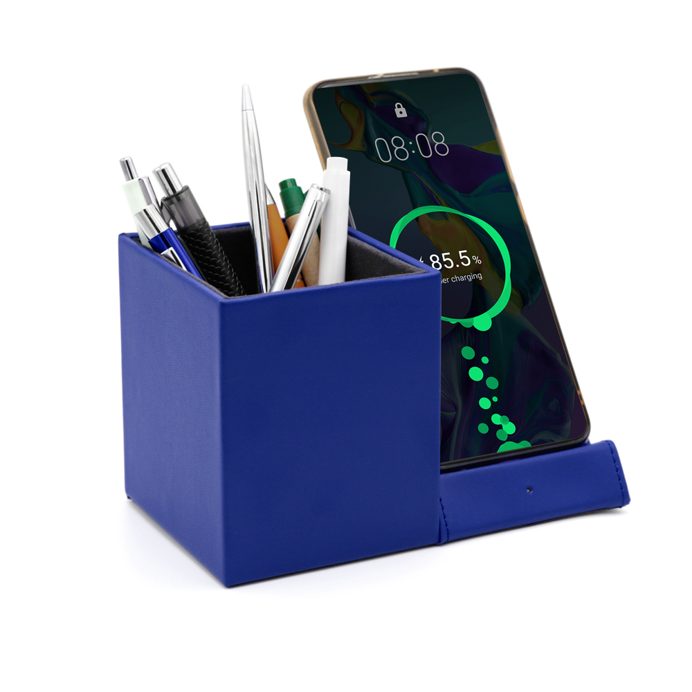 Настольный органайзер Elegans c беспроводной зарядкой и световым индикатором. Простая геометрия и четкие линии, лаконичный дизайн. Цвет по PANTONE® (максимально приближен): 2140C. Вход: 9V/1.67A/5V/2A USB 2.0. Выход: Беспроводная зарядка 10W. В комплекте кабель USB и инструкция.