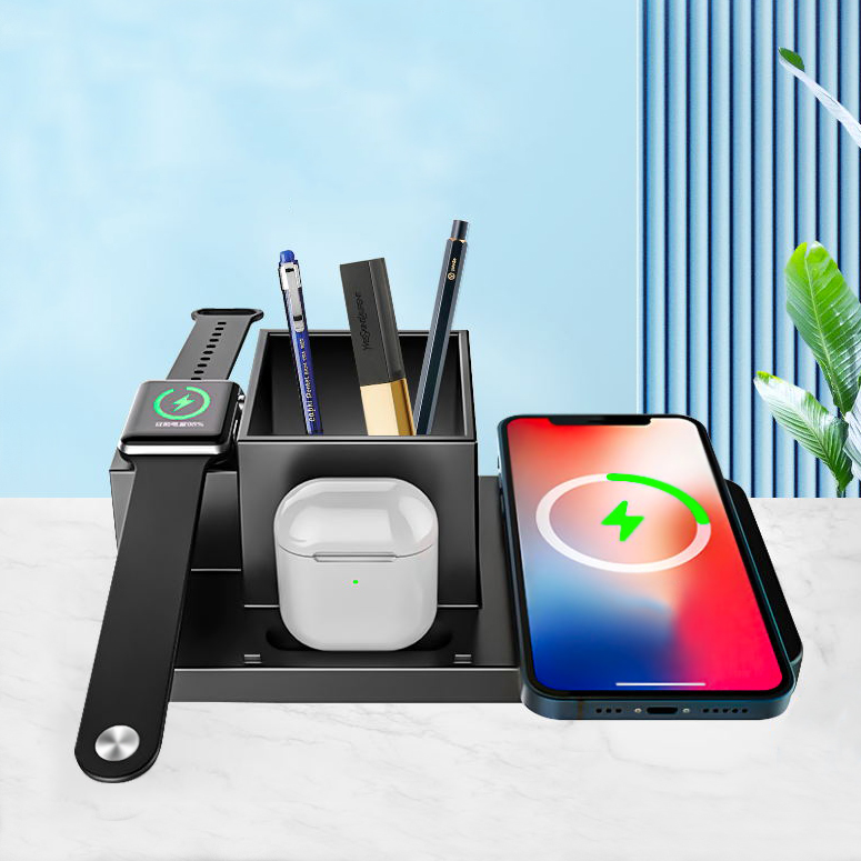 Настольный органайзер Medow c беспроводной зарядкой 15W, черный