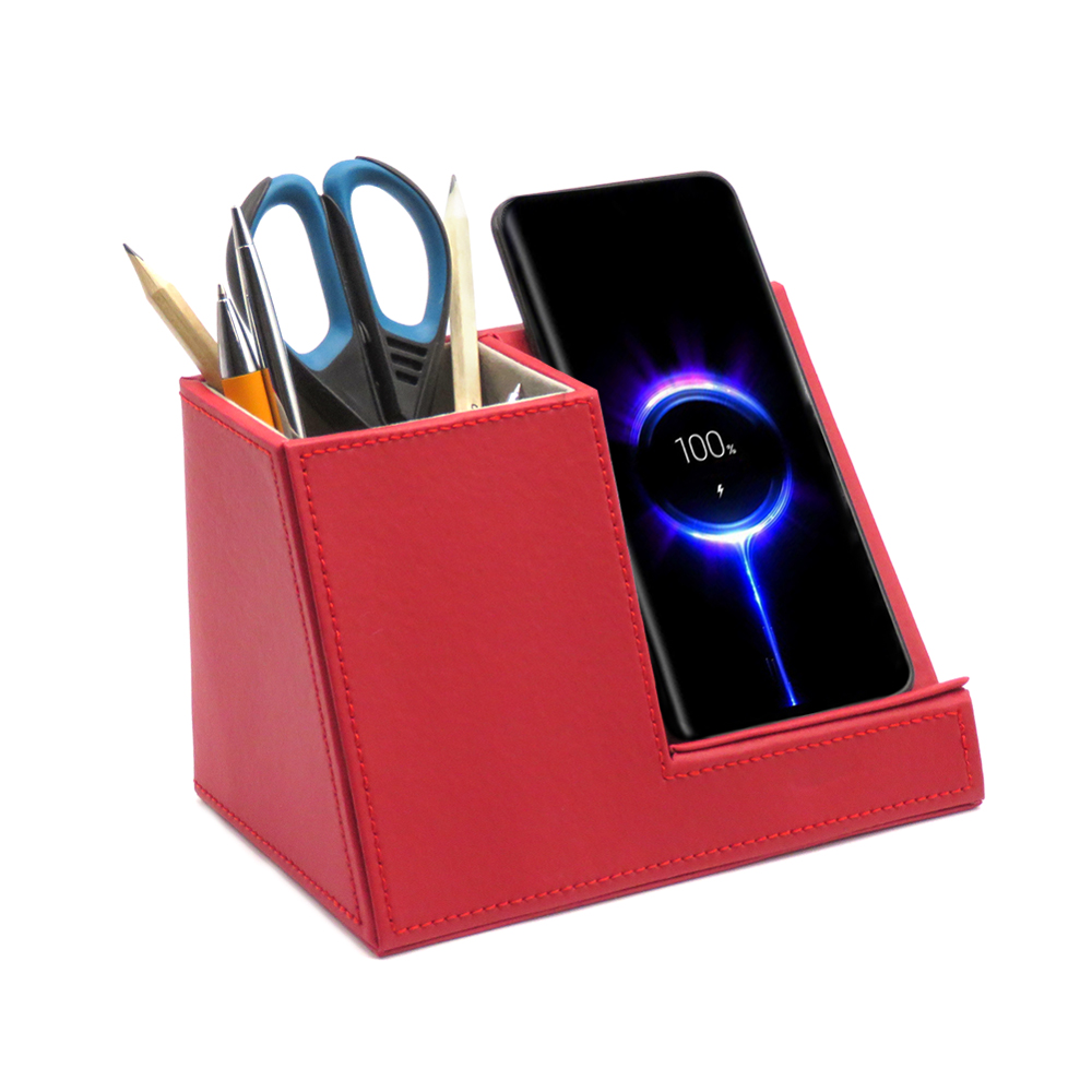 Настольный органайзер Ron c беспроводной зарядкой — это идеальный аксессуар для вашего рабочего стола! Этот органайзер позволит вам поддерживать порядок на столе и заряжать телефон с помощью беспроводной технологии. Аккумулятор мощностью 10W позволяет зарядить телефон в 2 раза быстрее по сравнению с другими зарядными устройствами. Цвет по PANTONE® (максимально приближен): 187C.Вход: 5V-2A / 9V-1.67A. Выход: 7.5W/10W. В комплекте кабель USB и инструкция.