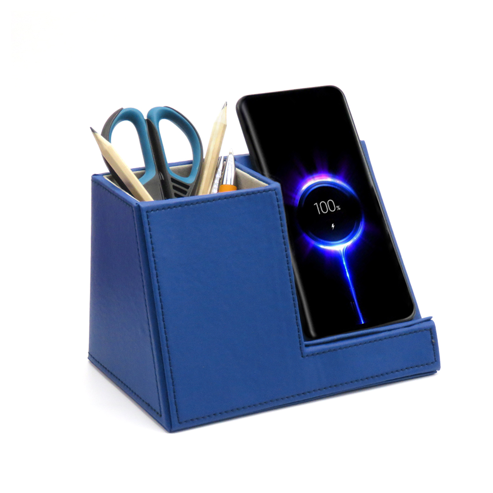 Настольный органайзер Ron c беспроводной зарядкой — это идеальный аксессуар для вашего рабочего стола! Этот органайзер позволит вам поддерживать порядок на столе и заряжать телефон с помощью беспроводной технологии. Аккумулятор мощностью 10W позволяет зарядить телефон в 2 раза быстрее по сравнению с другими зарядными устройствами. Цвет по PANTONE® (максимально приближен): 3584C. Вход: 5V-2A / 9V-1.67A. Выход: 7.5W/10W. В комплекте кабель USB и инструкция.