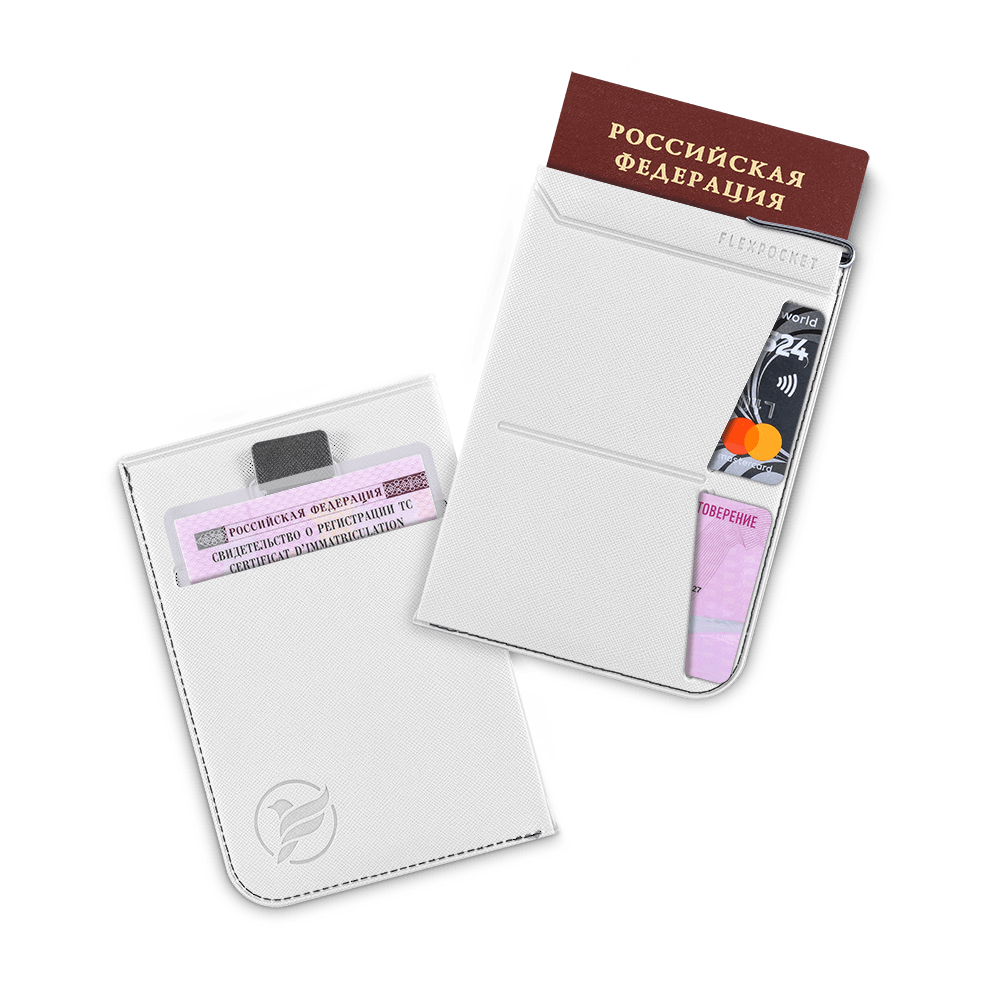 Универсальность обложки заключается в возможности размещения как паспорта РФ, так и загранпаспорта, а удобное расположение дополнительных карманов позволяет компактно разместить все необходимые документы для путешествий. Выдвижная лента поможет быстро извлечь паспорт на таможенном контроле, не задерживая очередь.