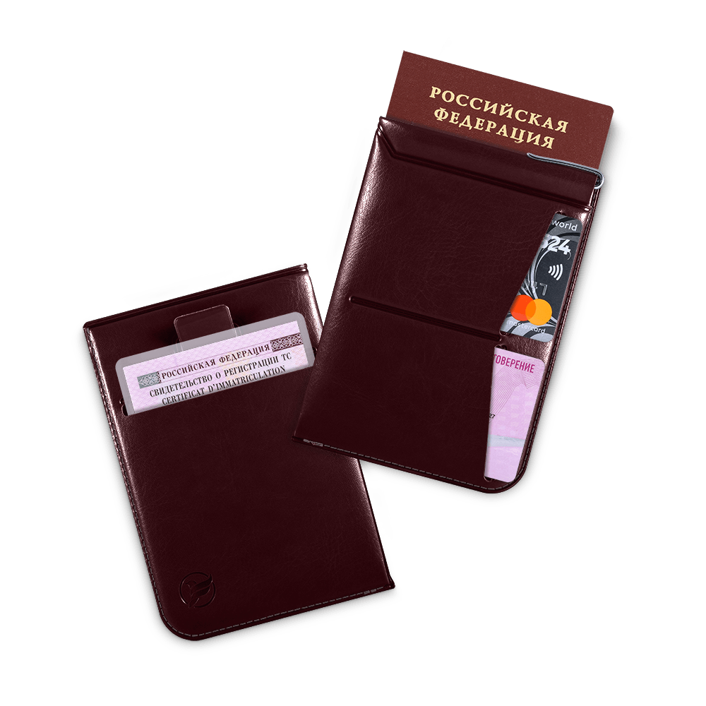 Универсальность обложки заключается в возможности размещения как паспорта РФ, так и загранпаспорта, а удобное расположение дополнительных карманов позволяет компактно разместить все необходимые документы для путешествий. Выдвижная лента поможет быстро извлечь паспорт на таможенном контроле, не задерживая очередь.