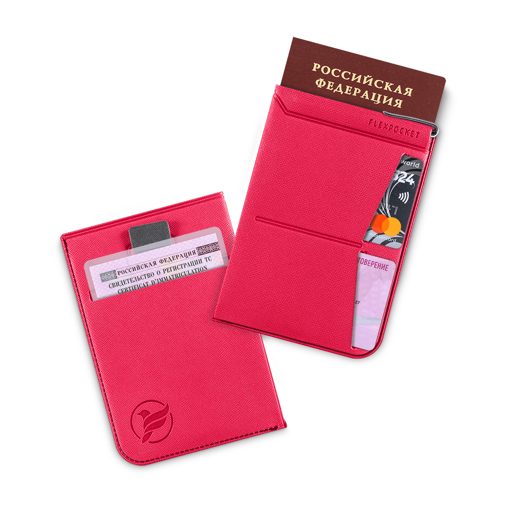 Универсальность обложки заключается в возможности размещения как паспорта РФ, так и загранпаспорта, а удобное расположение дополнительных карманов позволяет компактно разместить все необходимые документы для путешествий. Выдвижная лента поможет быстро извлечь паспорт на таможенном контроле, не задерживая очередь.