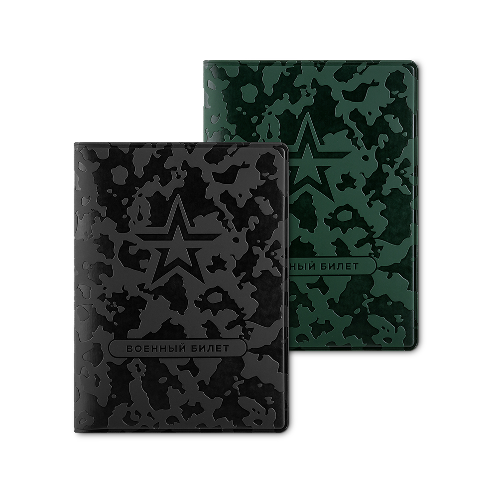 Чехол на зеленый военный билет для военных в офицерском звании и выпускников, прошедших военную кафедру изготовлен из экокожи и имеет размер 11,3 х 8,6 см. Внутри есть дополнительный кармашек, в который можно положить медицинскую пластиковую карточку или банковскую карту. На выбор обложка черного или темно-зеленого цвета с камуфляжным тиснением.