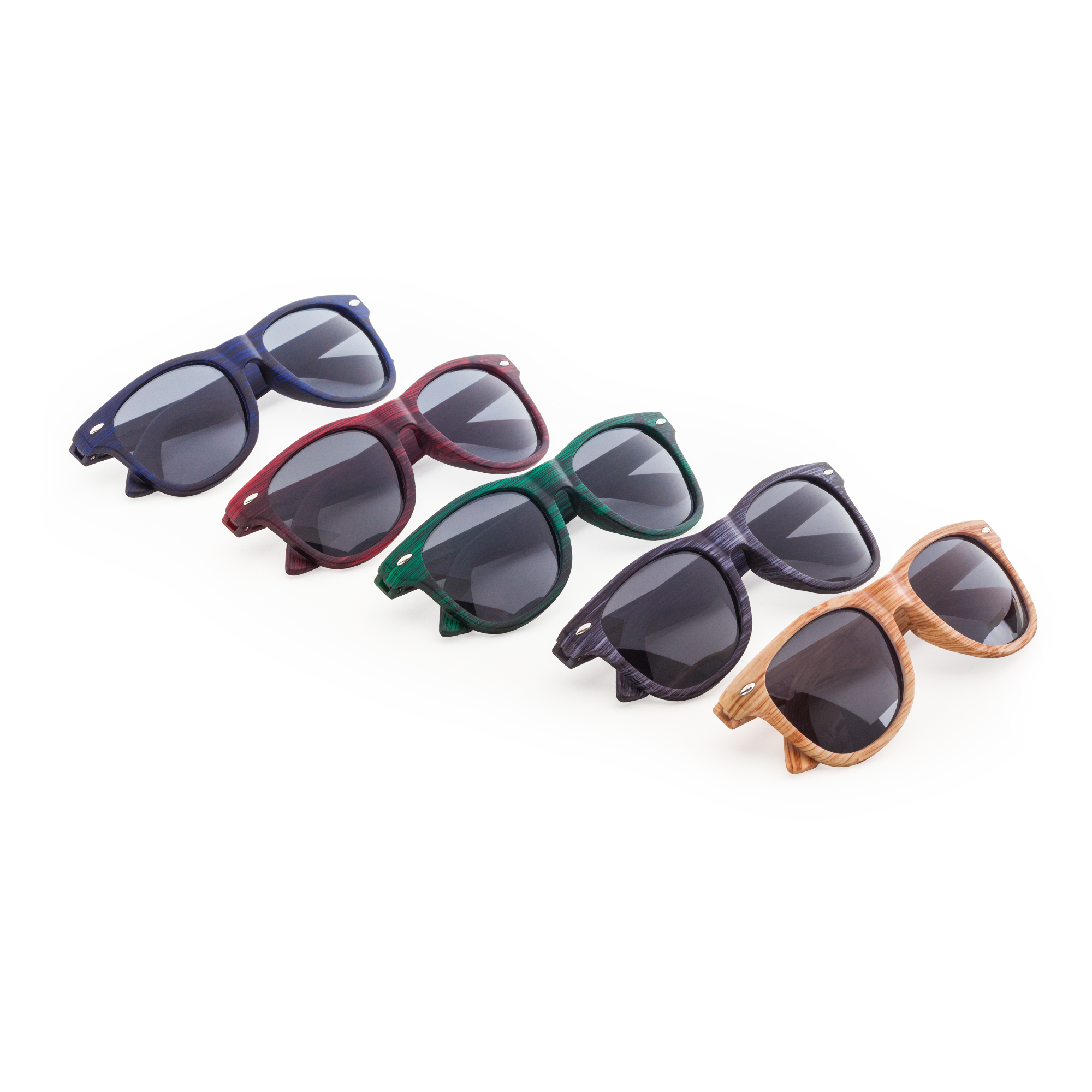 Классические солнцезащитные очки с отделкой под дерево и защитой UV400.