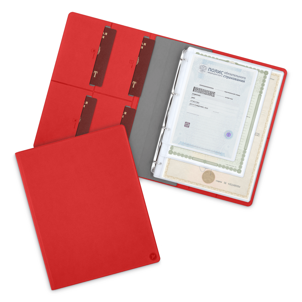 Многофункциональный органайзер на кольцах отлично подойдет для хранения или переноски важных документов с возможностью размещения дополнительных файлов. Всего имеет 34 отделения: 21 из которых — плотные матовые файлы и 13 карманов, которые расположены на внутренней стороне органайзера.