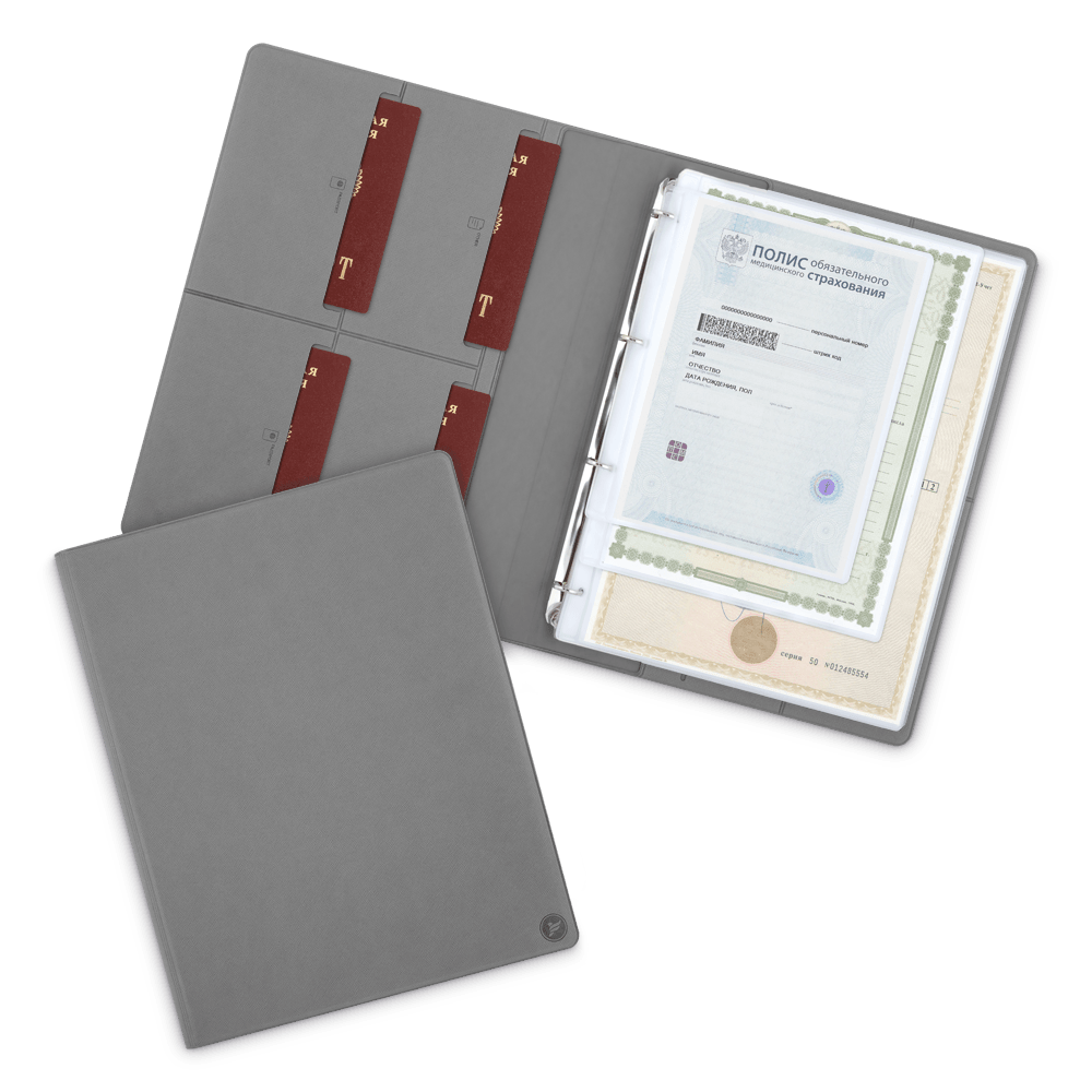 Многофункциональный органайзер на кольцах отлично подойдет для хранения или переноски важных документов с возможностью размещения дополнительных файлов. Всего имеет 34 отделения: 21 из которых — плотные матовые файлы и 13 карманов, которые расположены на внутренней стороне органайзера.