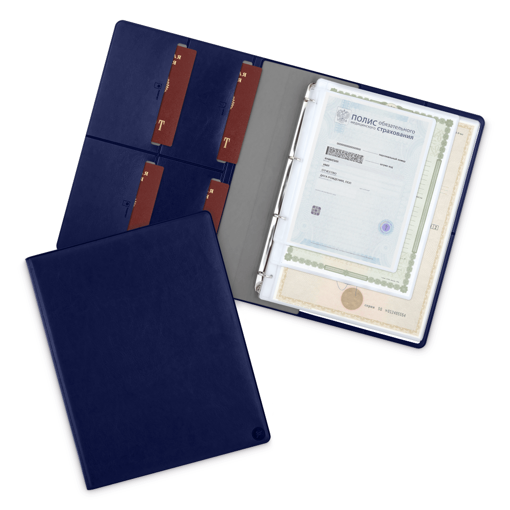 Органайзер для документов A4 на кольцах, цвет темно-синий classic