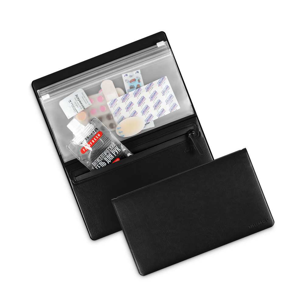 Органайзер выполнен из качественного материала — экокожа, которая долгое время сохраняет свои качества. Приобретая данный аксессуар, вы наполняете его всем необходимым исходя из потребностей. Прекрасный способ чтобы проявить заботу о посетителях, пассажирах, гостях и персонале.