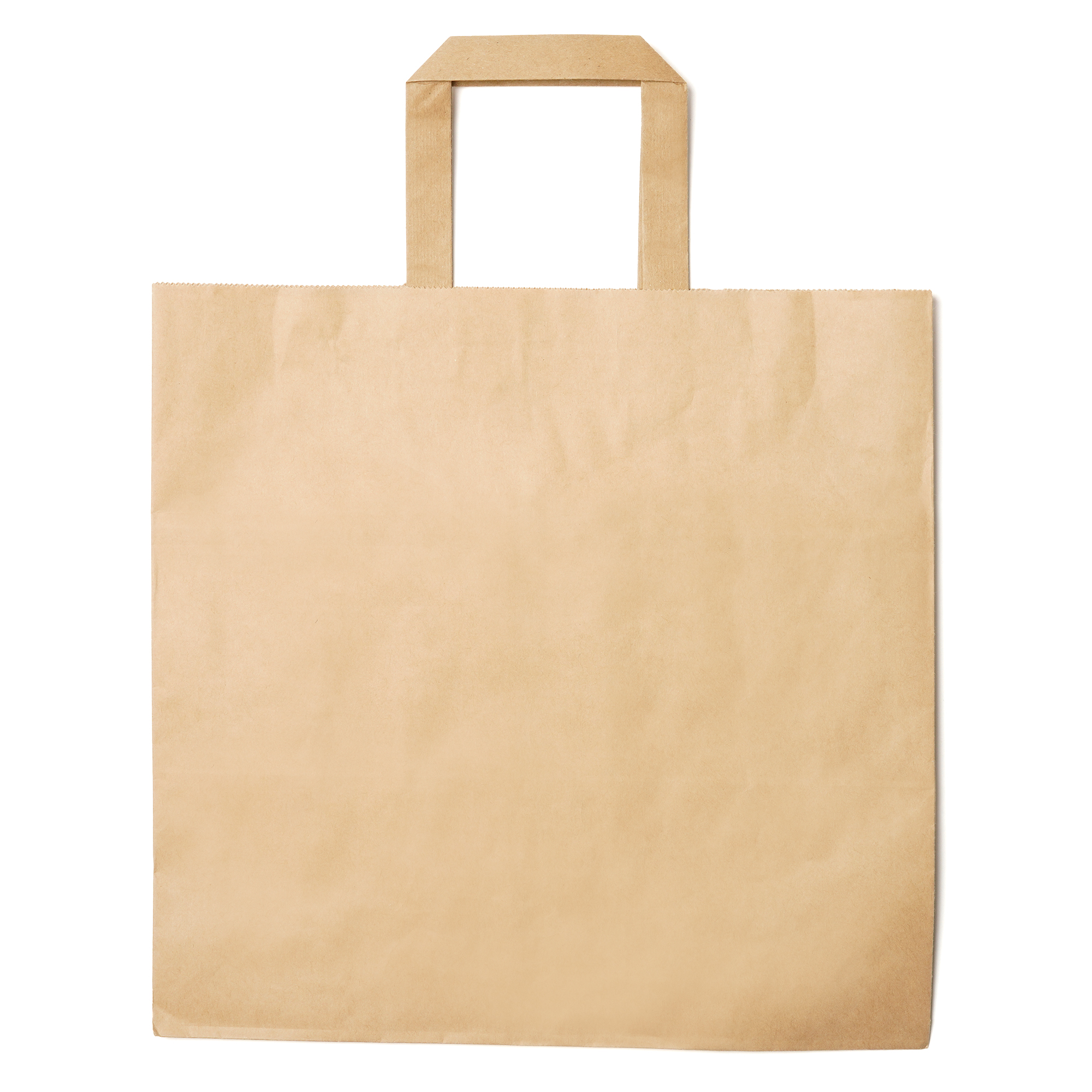 Бумажный пакет плотностью 80 г/м² натурального цвета. Усиленные короткие ручки плоского дизайна. Идеально подходит для сферы гостеприимства (на вынос).