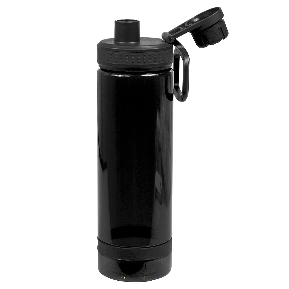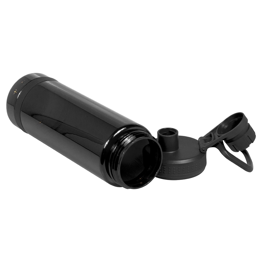 Бутылка имеет питьевое отверстие с откручивающейся крышкой и складную ручку-петлю для легкой переноски. Ее объем позволяет наполнять всего пару раз для достижения дневной нормы воды. Также она подходит для большинства велосипедных держателей для бутылок, что делает ее идеальным выбором для активного образа жизни. Цвет бутылки — чёрный.