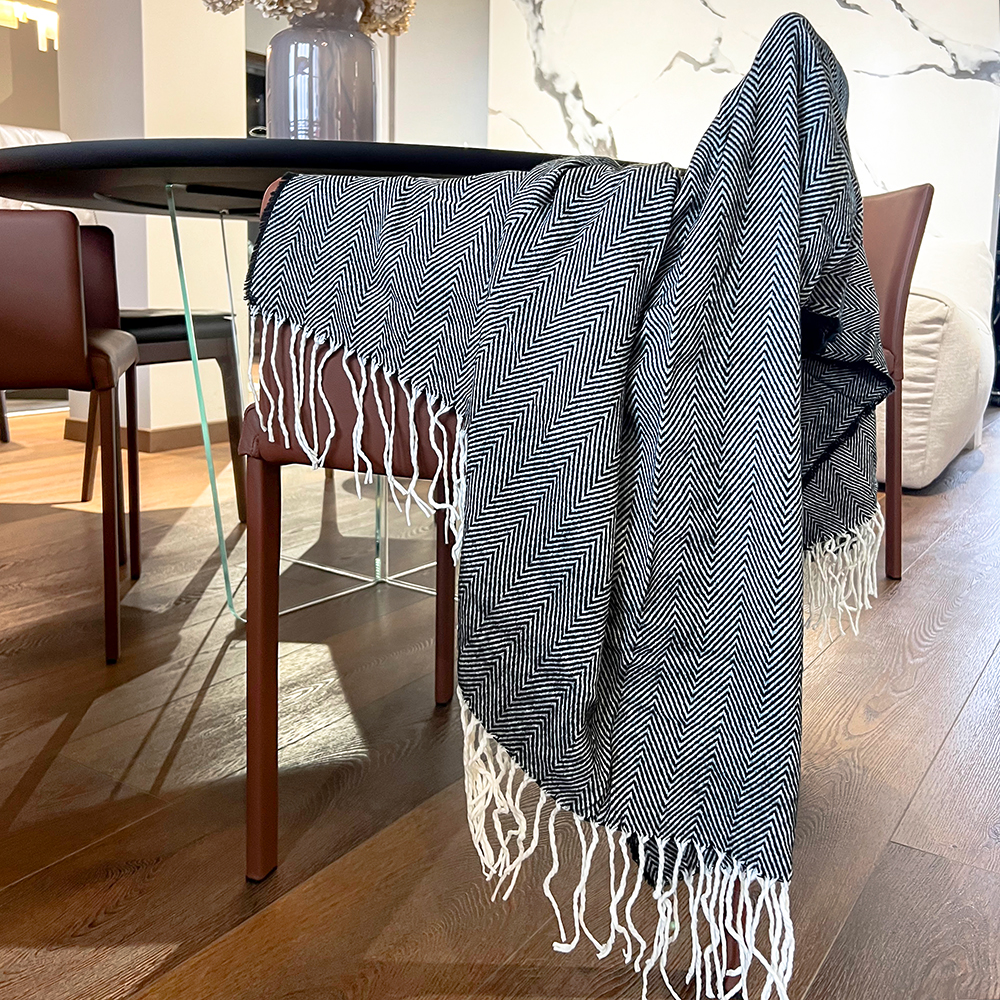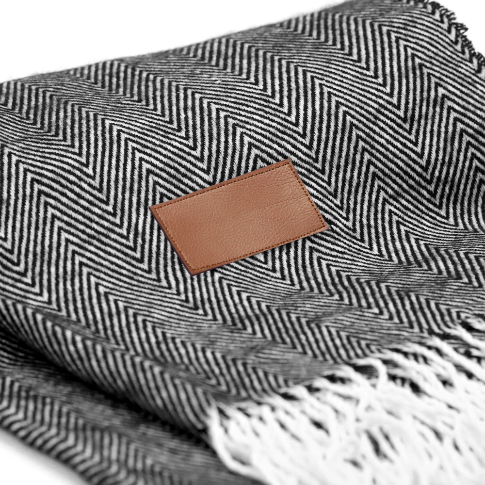 Плед SAMUM изготовлен из высококачественной акриловой пряжи, что позовляет добиться мягкости и тепла как от натуральной шерсти. Благодаря составу плед легкий, хорошо сохраняет теплоизолирующие свойства и надолго радует внешним видом. Также гипоаллергенен, не накапливает статическое электричество и легко стирается. Плед имеет классический узор “елочка”, с бахромой по краям. Для нанесения логотипа предусмотрена нашивка из кожзама (8 x 4 см). Плед упакован в пластиковый пакет, сложен в виде рулона с текстильным держателем.