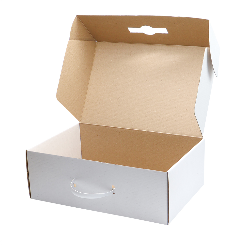 Коробка двухсторонняя. Может быть белая снаружи крафтовая внутри или наоборот, крафтовая снаружи белая внутри.