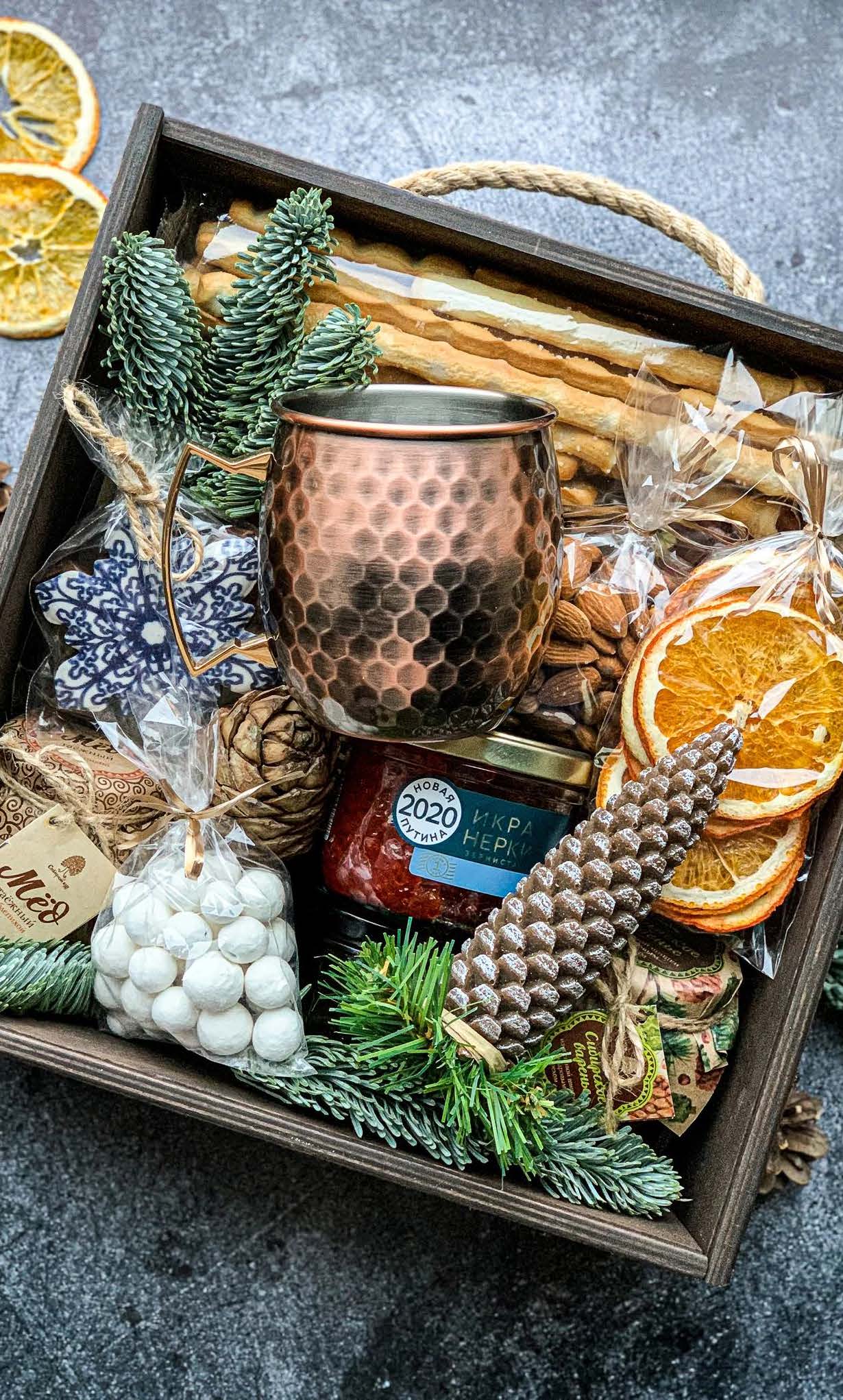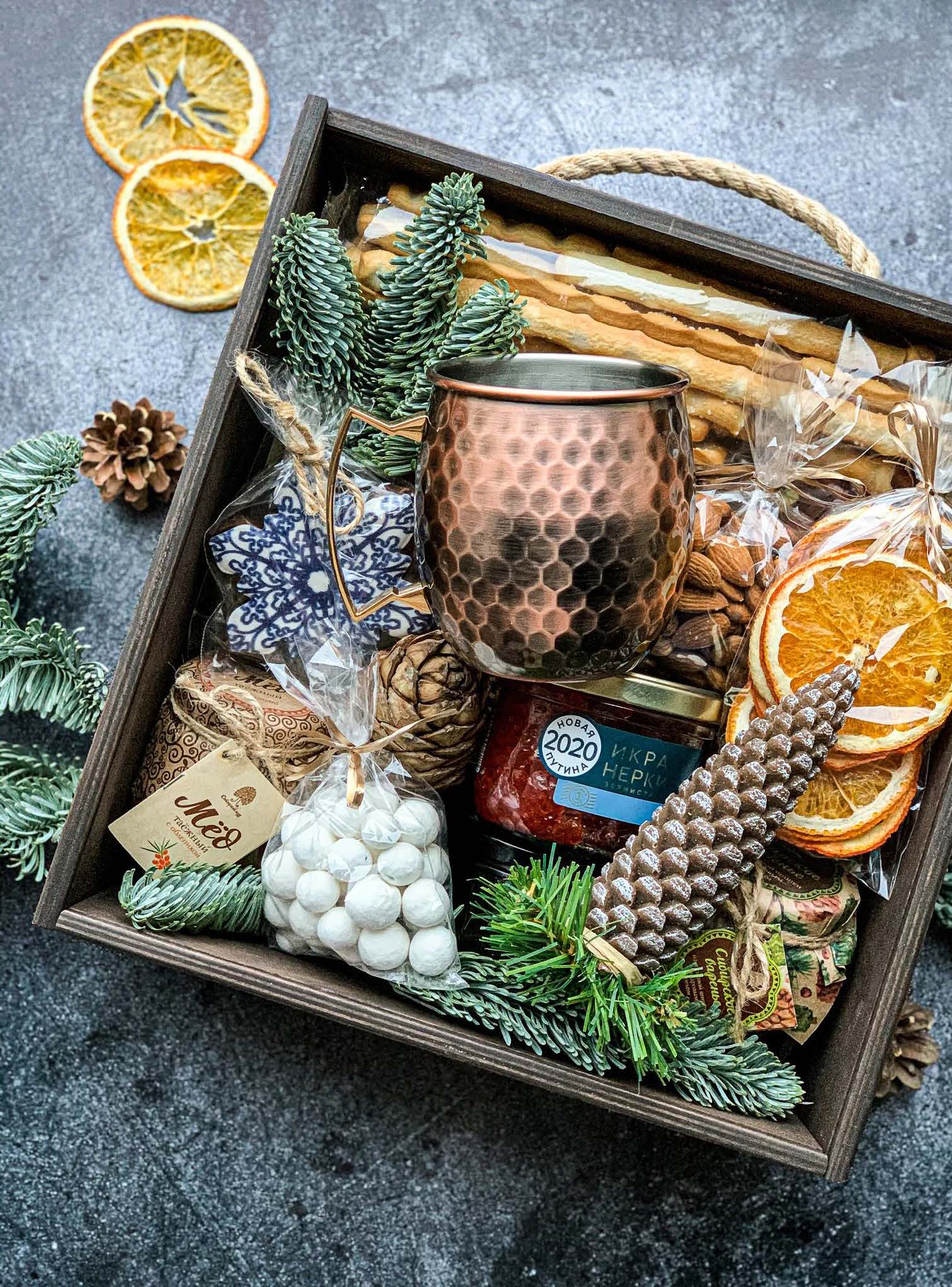 Погрузитесь в атмосферу русской зимы! Красная икра, вяленое мясо и друп традиционные новогодние закуски и сладости создадут праздничное настроение и подарят яркие вкусы, а медная чеканная кружка станет украшением стола или шикарным аксессуаром для бани.