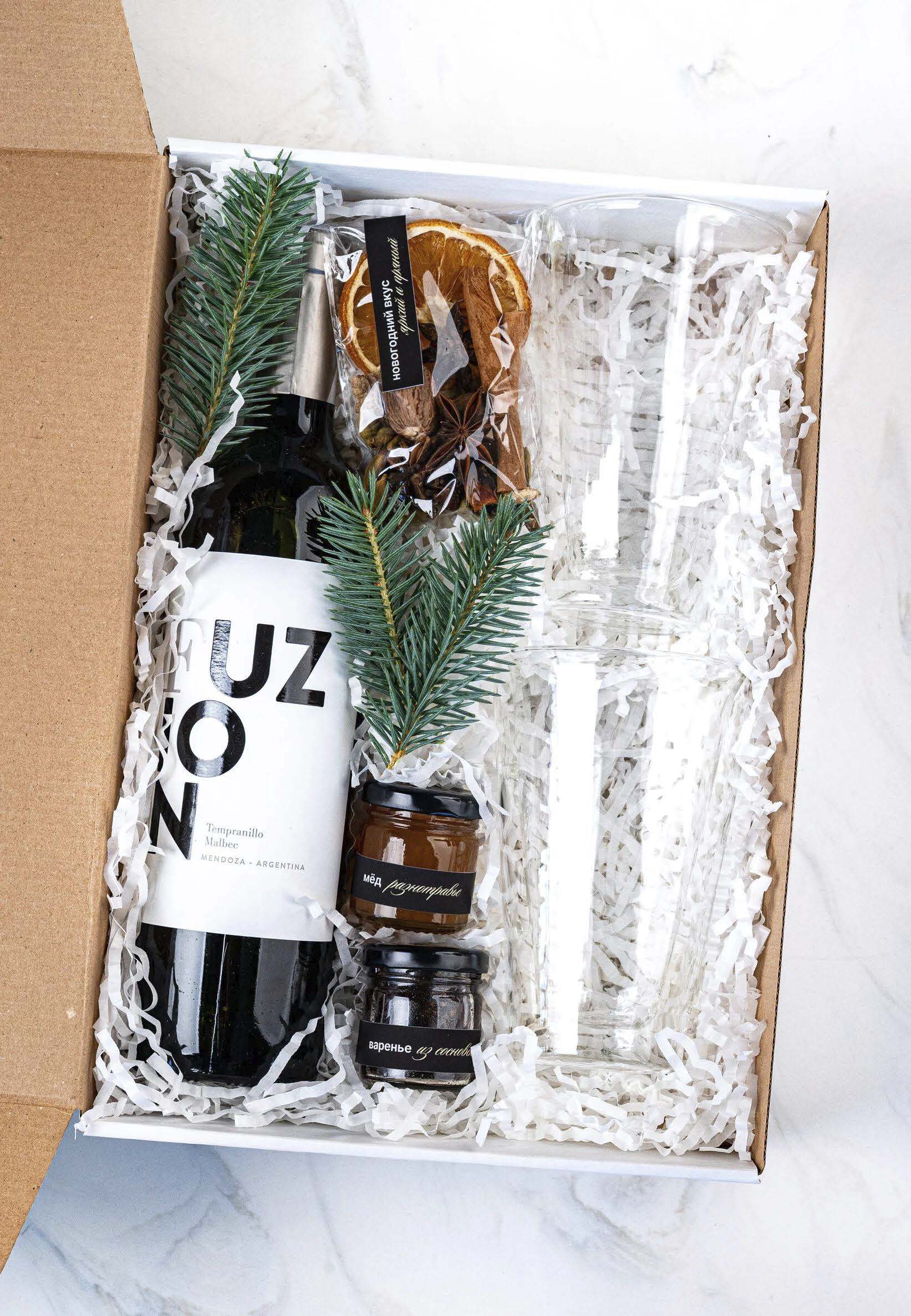 Этот набор объединяет всё необходимое для создания безупречного, согревающего глинтвейна холодным зимним вечером! Стильные кружки для глинтвейна с двойными стенками, душистый мёд, ароматные специи и баночка варенья из сосновых шишек с хвойным ароматом — всё, что нужно, чтобы наполнить дом магией любимого праздника!