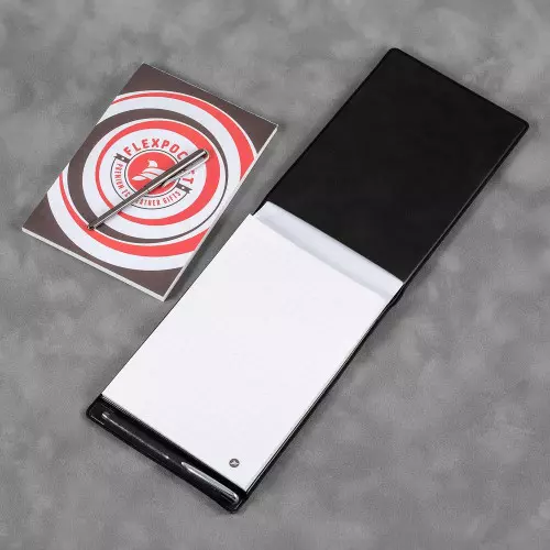 Для создания твердой обложки с блокнотом мы используем качественный материал — экокожу, которая придает изделию премиальный вид. С такой обложкой самый обычный блокнот станет стильным и практичным промо или бизнес — сувениром. Изображение или логотип компании наносятся при помощи полноцветной печати, а блинтовое тиснение прекрасно подойдет для оттиска логотипа на однотонных изделиях. Оба метода персонализации помогут создать яркий и запоминающийся аксессуар.