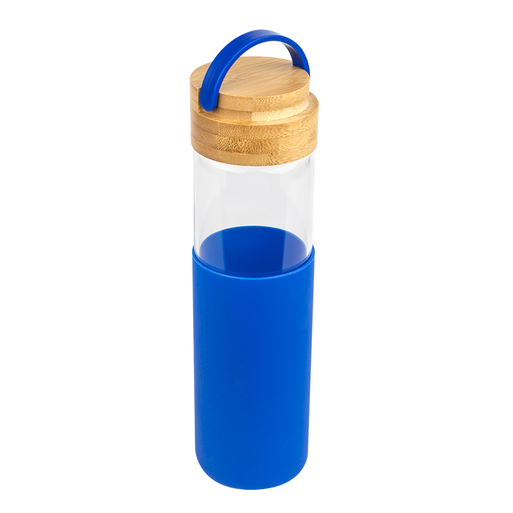 Бутылка стеклянная с силиконовой манжетой и бамбуковой крышкой Glass , синий — 1 шт. (Артикул: 14032.03)