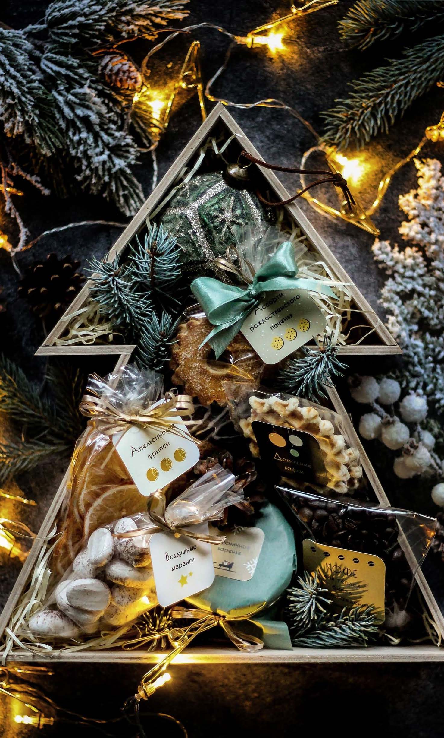 Подарочный набор в деревянном ящике в форме ёлки, который обязательно вызовет «wow-эффект» благодаря своему праздничному виду и богатому содержанию!