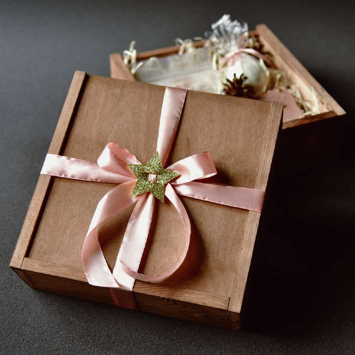 - ящик-пенал из цельного дерева с фанерной крышкой и гравировкой логотипа