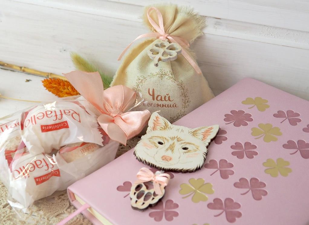 - чай черный в бязевом мешочке с деревянным подвесом-клевером;