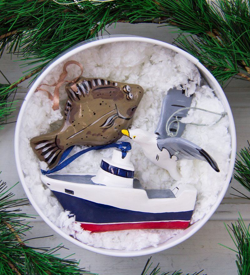 Подарочный набор новогодних игрушек из авторского фарфора «Морской бриз»