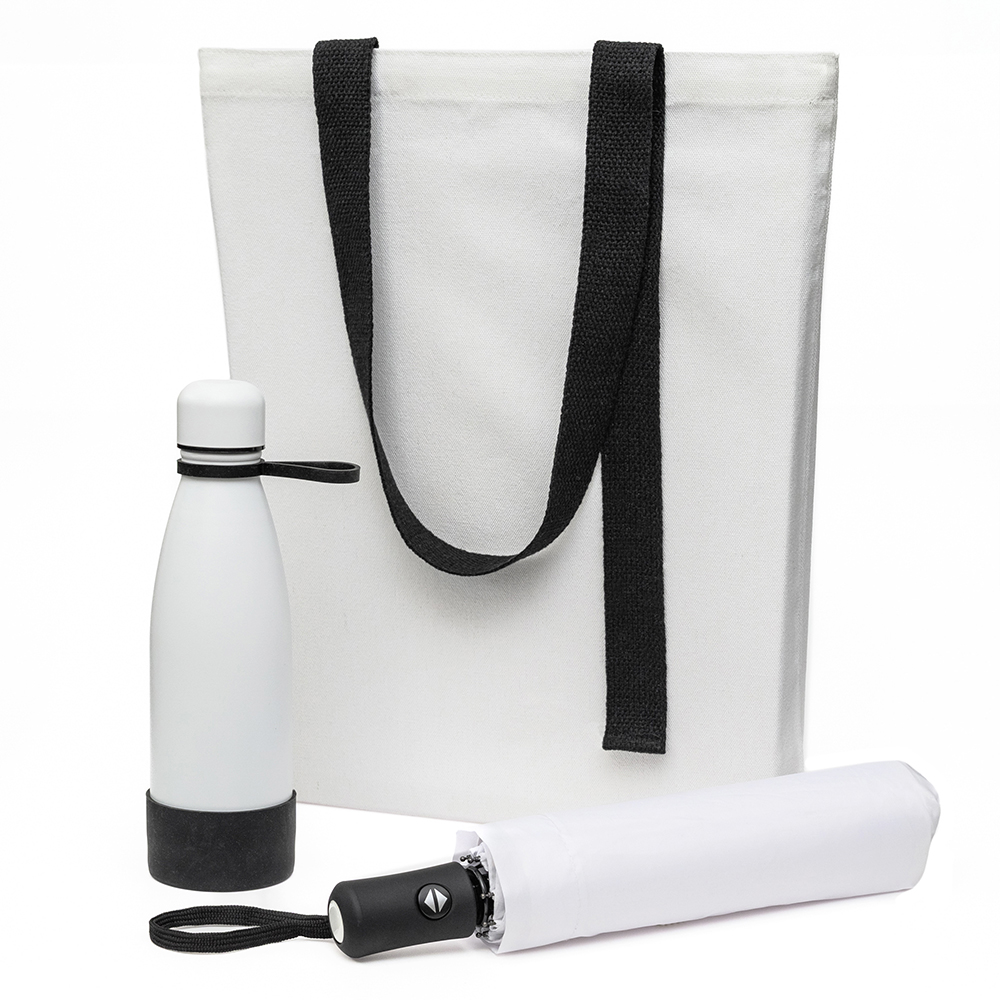 В него входят элегантный шоппер, удобная термокружка и надежный зонт, которые помогут вам быть готовым ко всему.