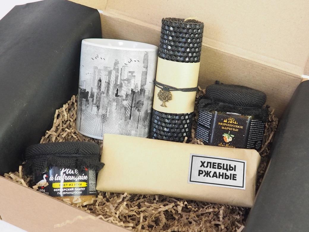 Упаковка — крафт коробка с декором (24х22х10 см).