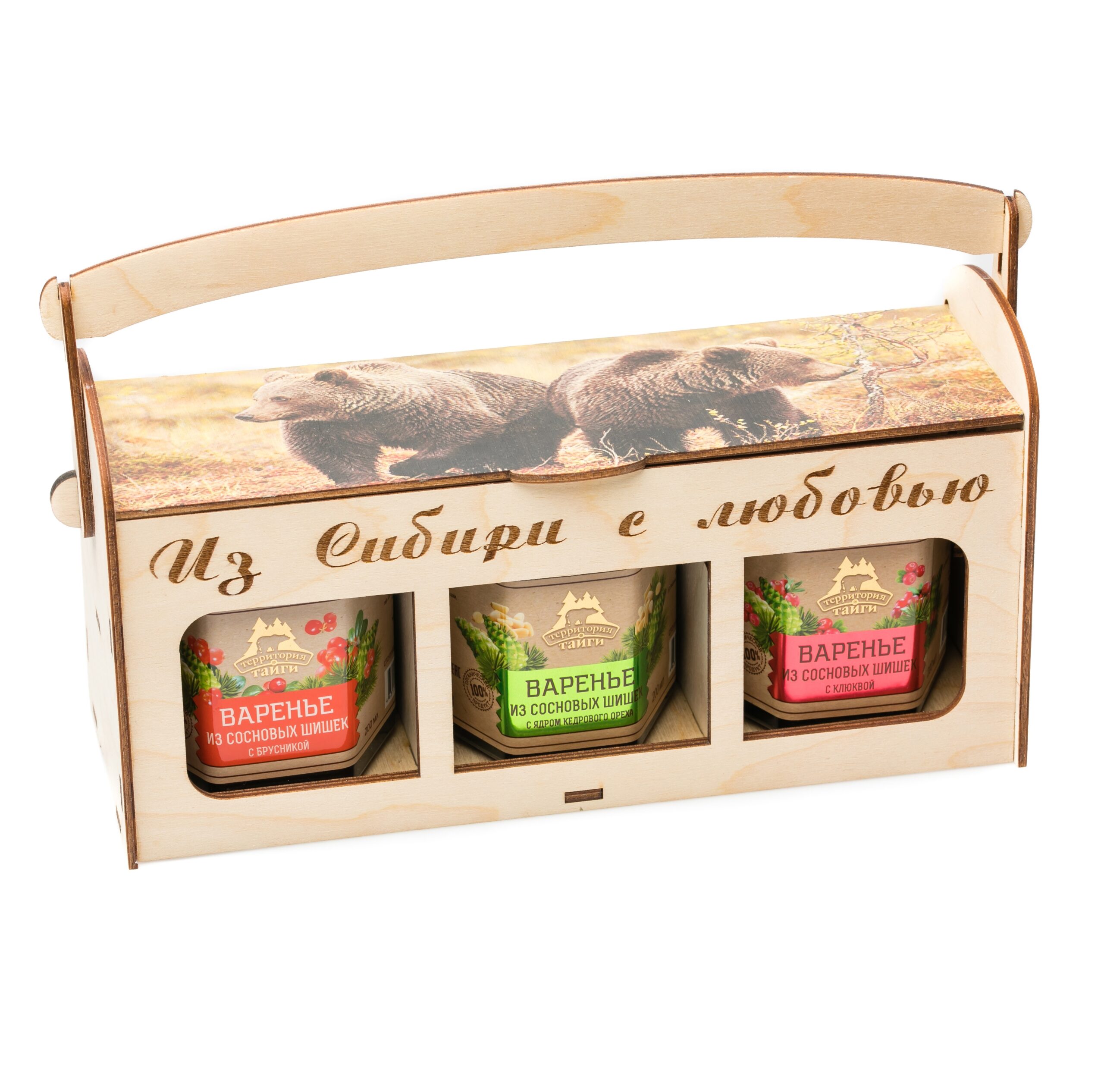 Наполнение деревянного сундучка включает в себя три разных варенья: