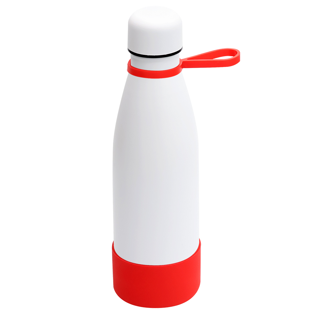 Вакуумная термобутылка Olivia, белый — артикул 5050.01, кольцо-держатель — красный; манжета — красный