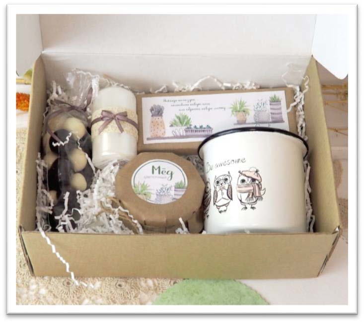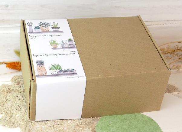 Упаковка – крафт-коробка с декором из картонной шубки.