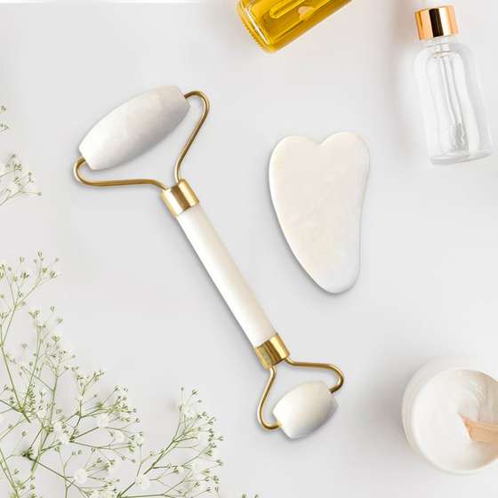 - набор массажеров 2 шт гуаша для лица (в белом мешочке), натуральный кальцит