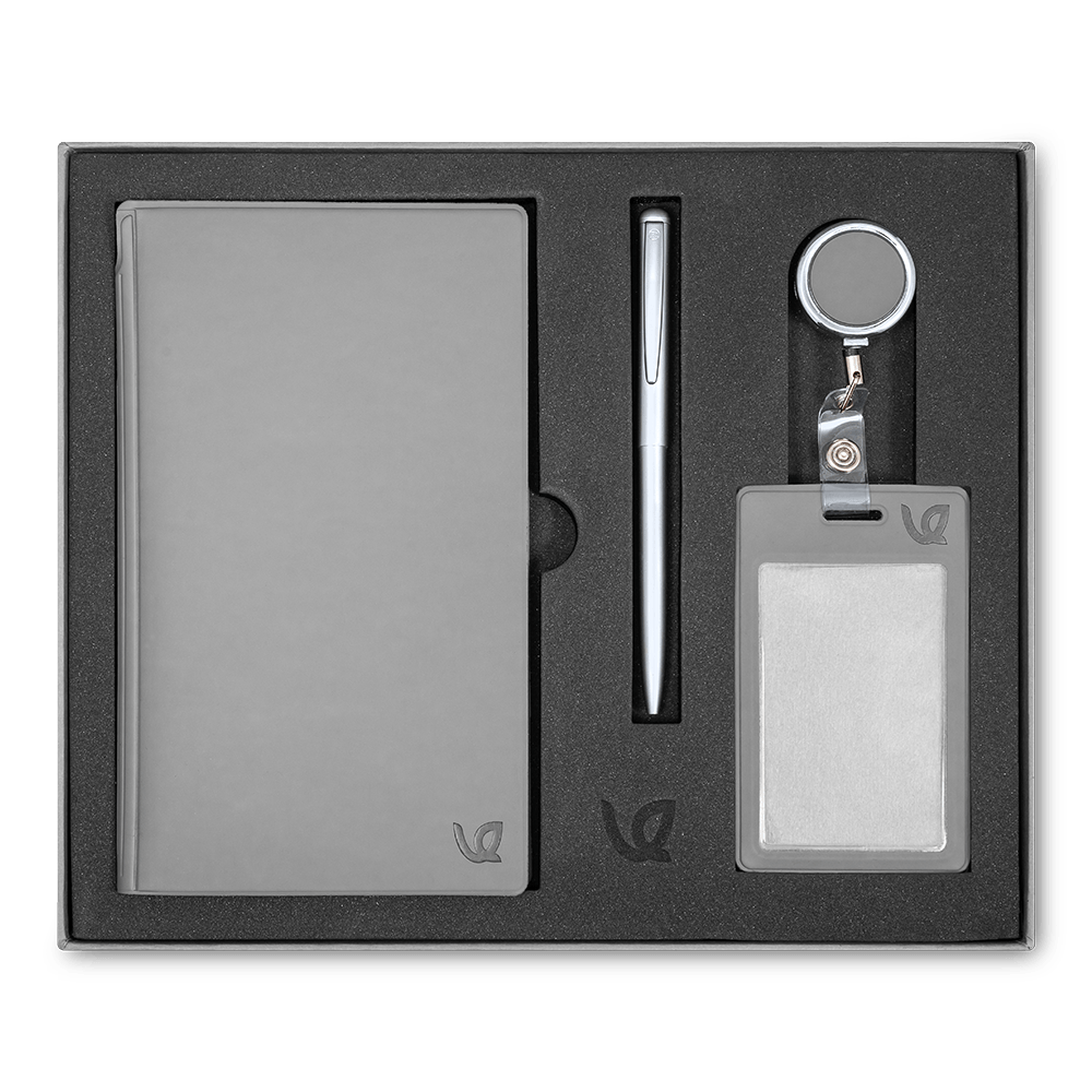Пример подарочного набора для офиса, который прекрасно подойдет в качестве подарка на любое событие. Содержимое представляет собой офисные аксессуары, которые всегда под рукой:
