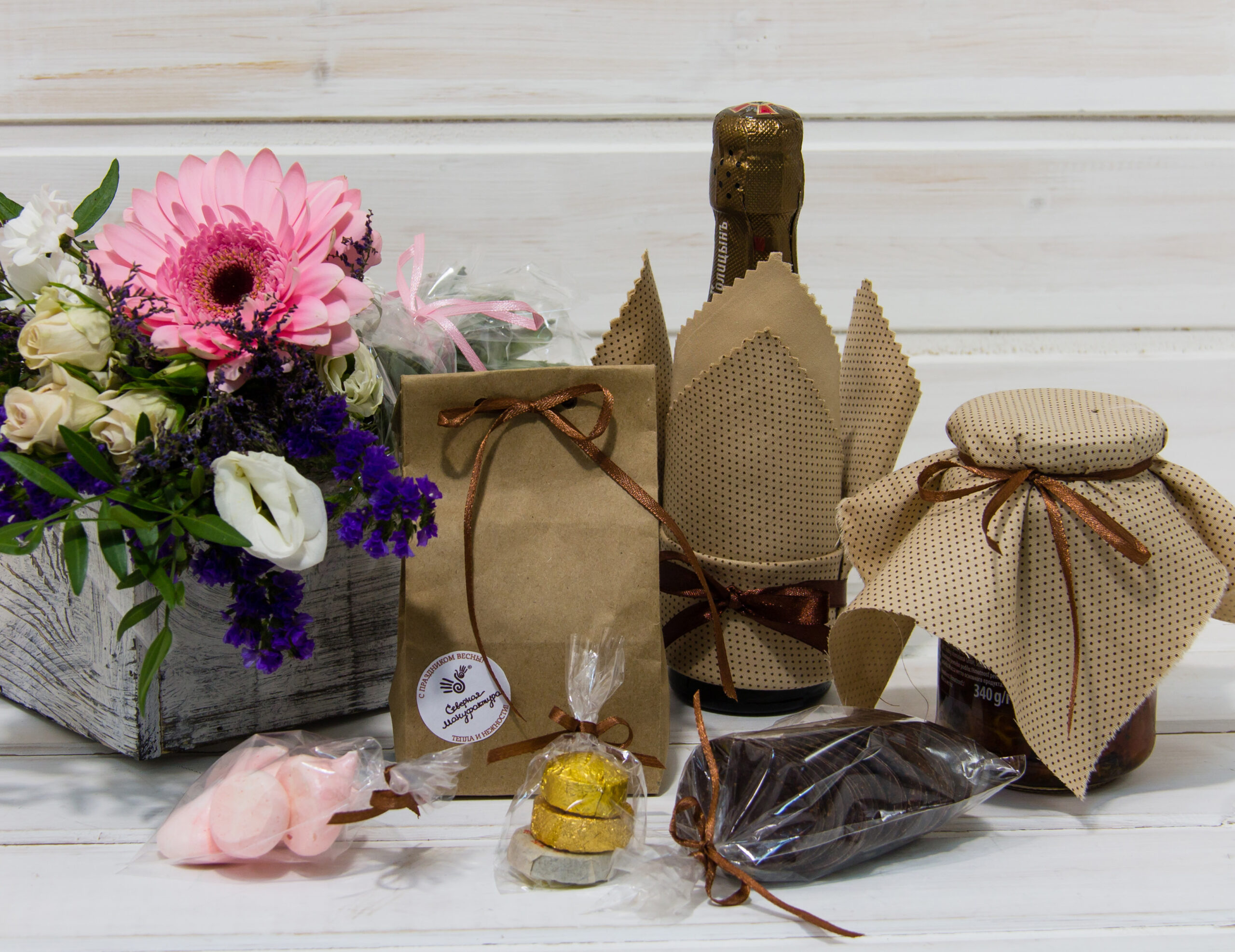 - конфеты шоколадные (горький и молочный шоколад) – 120 г в крафт-пакете