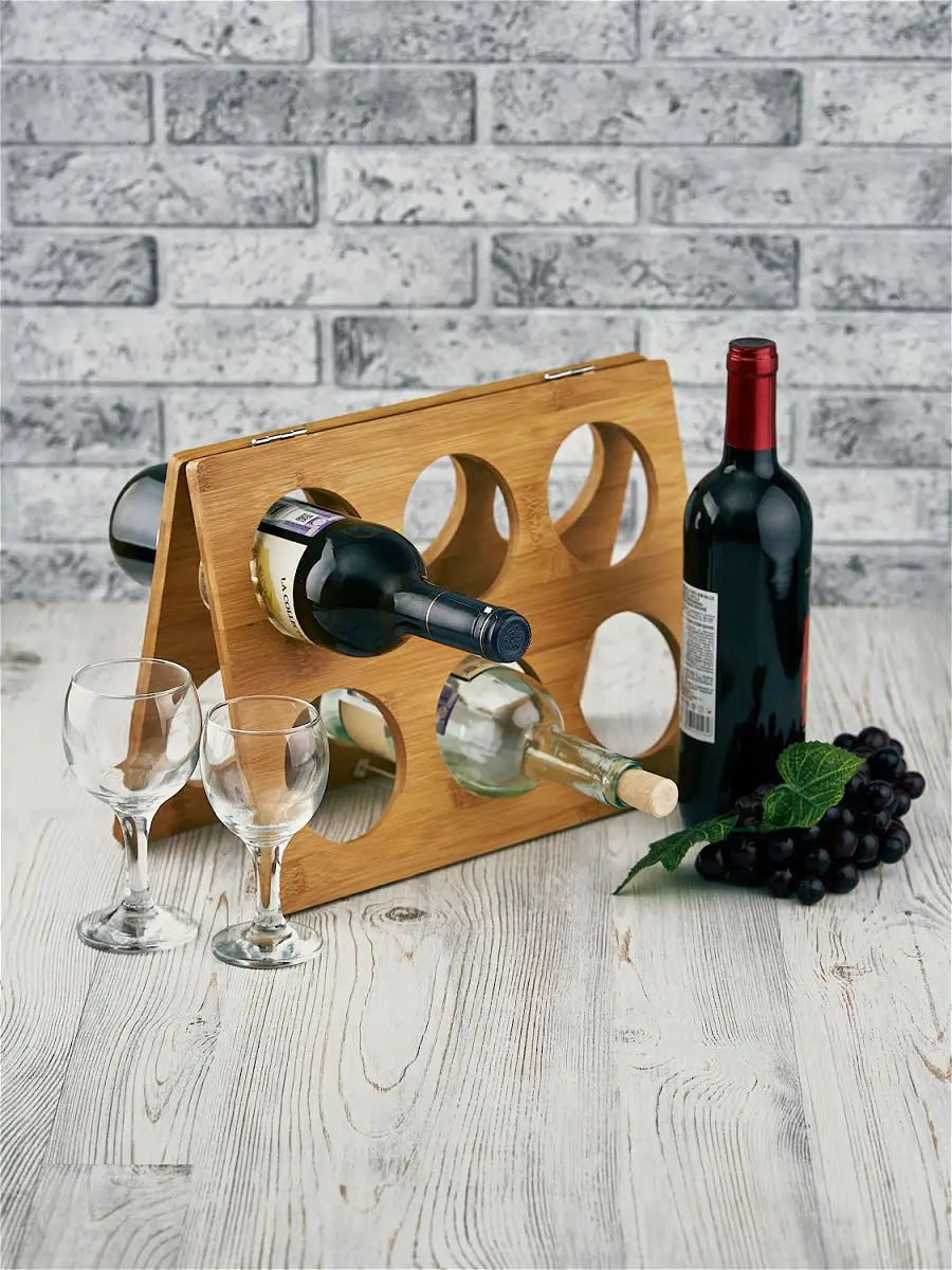 Настоящие ценители вин знают, что вкусовые качества напитка напрямую зависят от грамотного хранения вина. Бутылку необходимо хранить в горизонтальном положении, чтобы жидкость могла омывать пробку и не дать ей рассохнуться. Подставка для бутылок позволит сохранить неповторимый вкус благородного напитка, благодаря уникальной конструкции, позволяющей хранить бутылки в горизонтальном положении. Данная модель позволит разместить до шести бутылок. Подставка станет незаменимым аксессуаром, который пригодиться не только в организации домашнего бара, но и украсит праздничный стол. Размер 35х15х25 см,