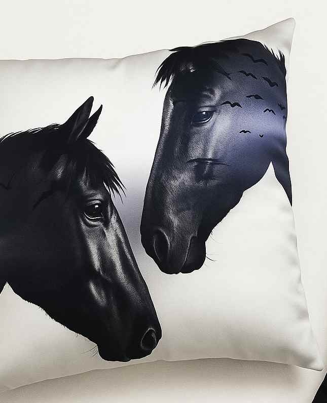 Добавьте праздничного настроения в интерьер с декоративной подушкой (40х40 см), украшенной стильным принтом двух лошадей. Она наполнит ваш дом атмосферой уюта, станет ярким акцентом в гостиной или спальне и подарит ощущение тепла в зимние вечера.