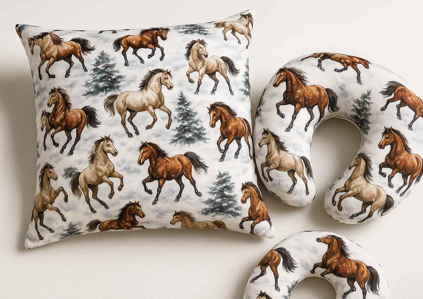 Новогодняя подушка с принтом «Лошади» – уют и волшебство в каждом доме!