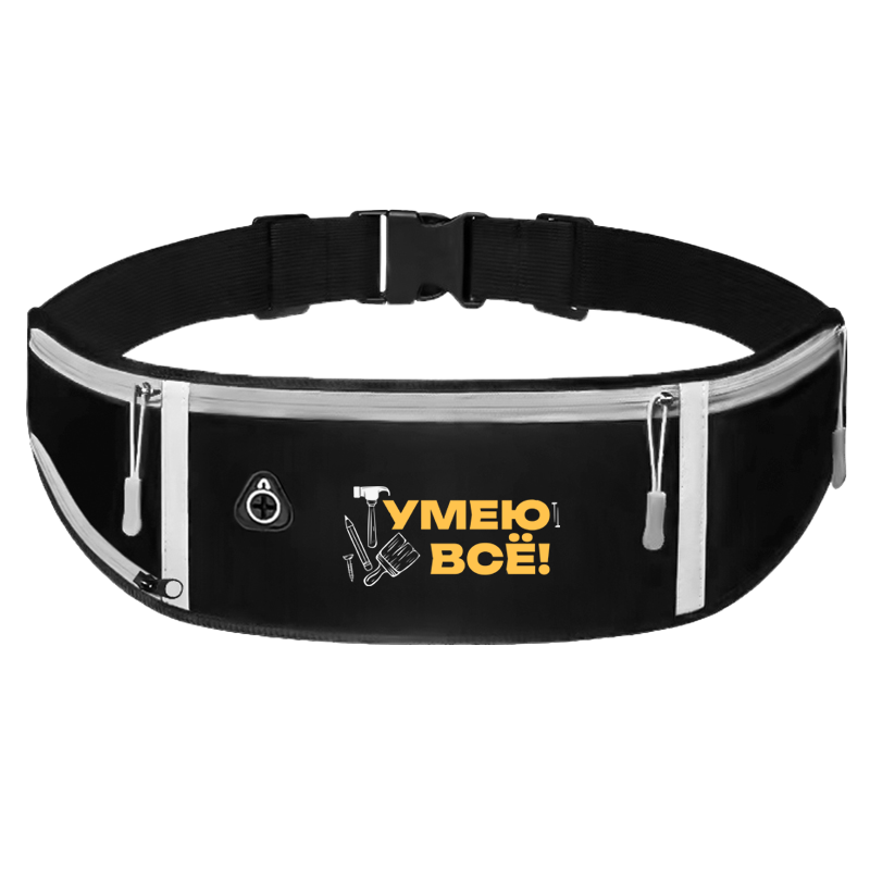 В основное отделение помещается смартфон и есть специальный слот для наушников. Два боковых кармана помогают оптимально разместить все мелочи, а в благодаря дополнительной молнии и сетке можно закрепить небольшую бутылку с водой.