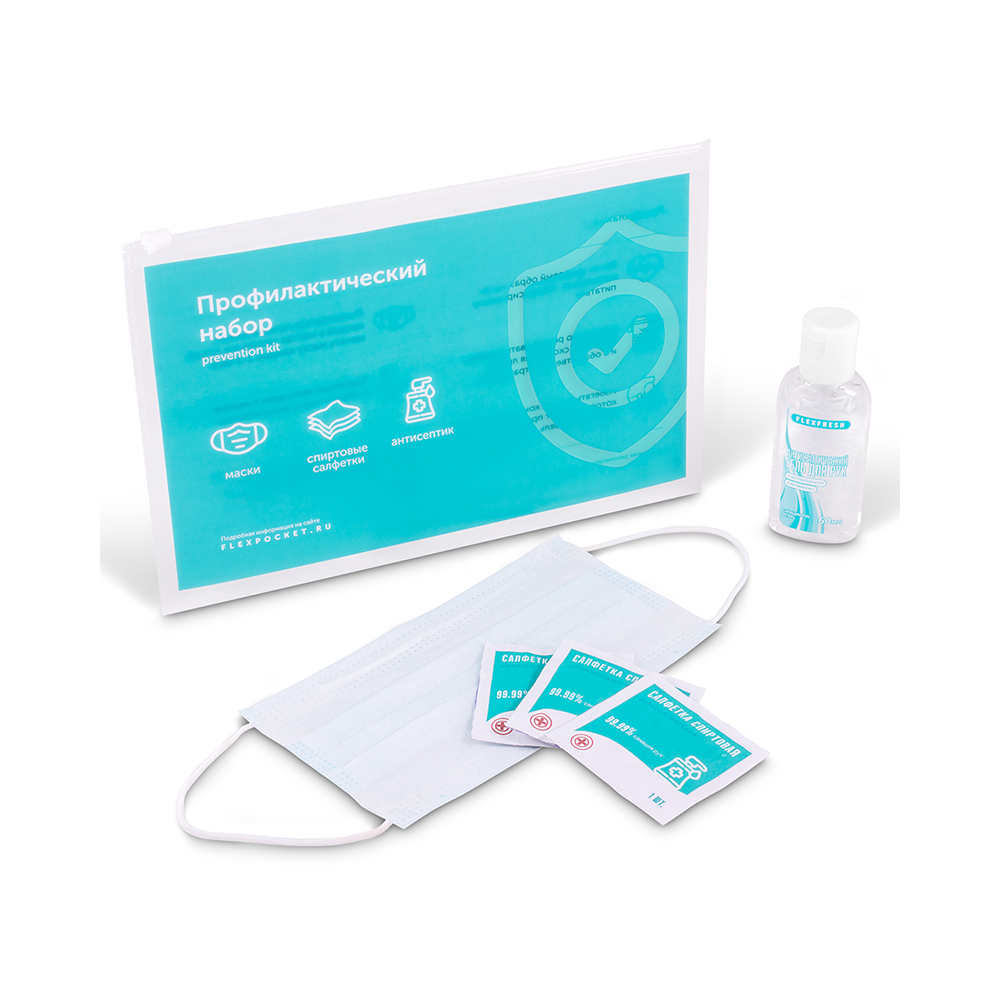 Набор особенно актуален для сотрудников, у которых нет возможности часто мыть руки или по долгу службы они работают на улице. В таком случае подручные средства личной гигиены будут кстати и помогут в быстрой дезинфекции. Удобная мягкая упаковка имеет компактный размер и закрывается при помощи замка zip-lock. На поверхность упаковки, при помощи полноцветной печати, можно нанести логотип компании или соответствующую инструкцию по применению.
