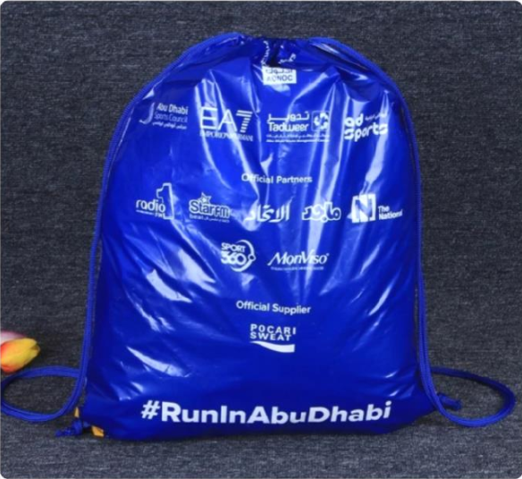 Нестандартный мешок из полиэтилена в виде рюкзака. Также сумка с цветными пластиковыми ручками.