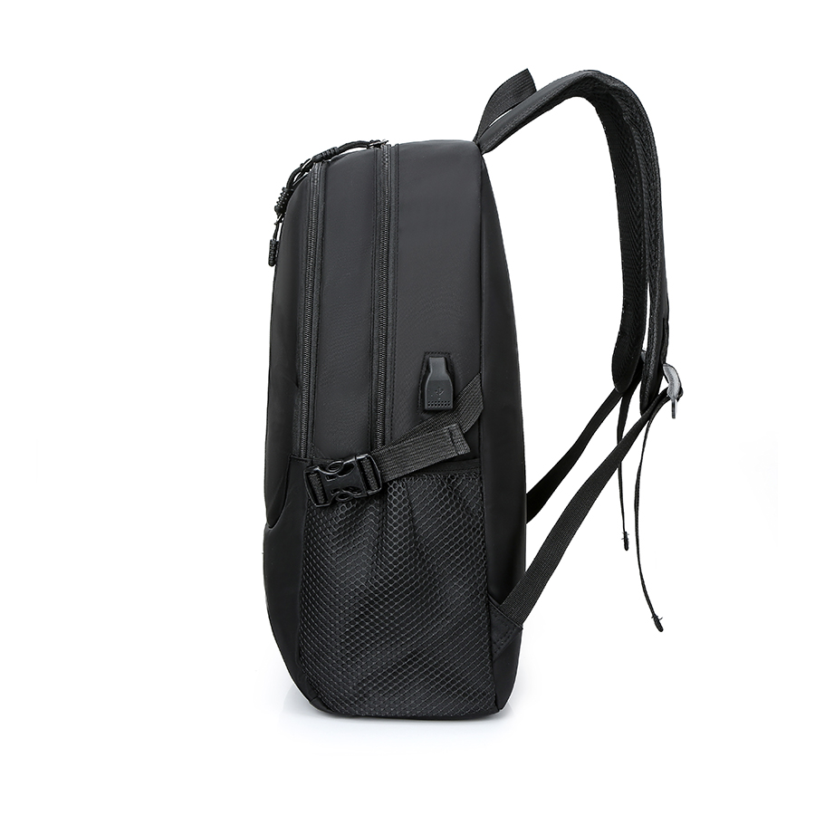 Сбоку USB-разъем с проводом для подключения внешнего аккумулятора, который при необходимости можно спрятать под небольшой молнией внутри и два объёмных кармана с вентилируемой сеткой и регулируемыми тесьмами-стяжками на защёлках-фастексах которые существенно расширяют функционал и вместимость рюкзака.