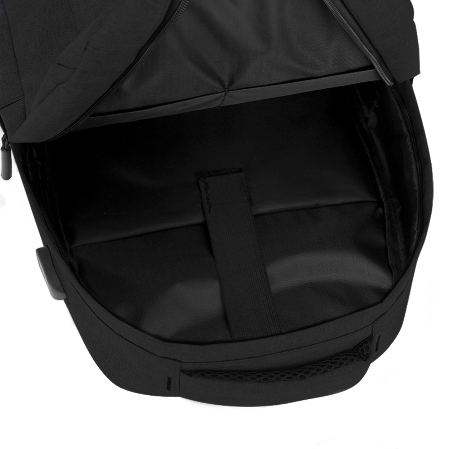 Одно большое отделение закрывается скрытой молнией, что предотращает попадание внутрь дождя и снега. Внутри большой уплотненный карман для ноутбука 14 дюймов с клапаном-резинкой на велькро и карман-органайзер для мелких аксессуаров.