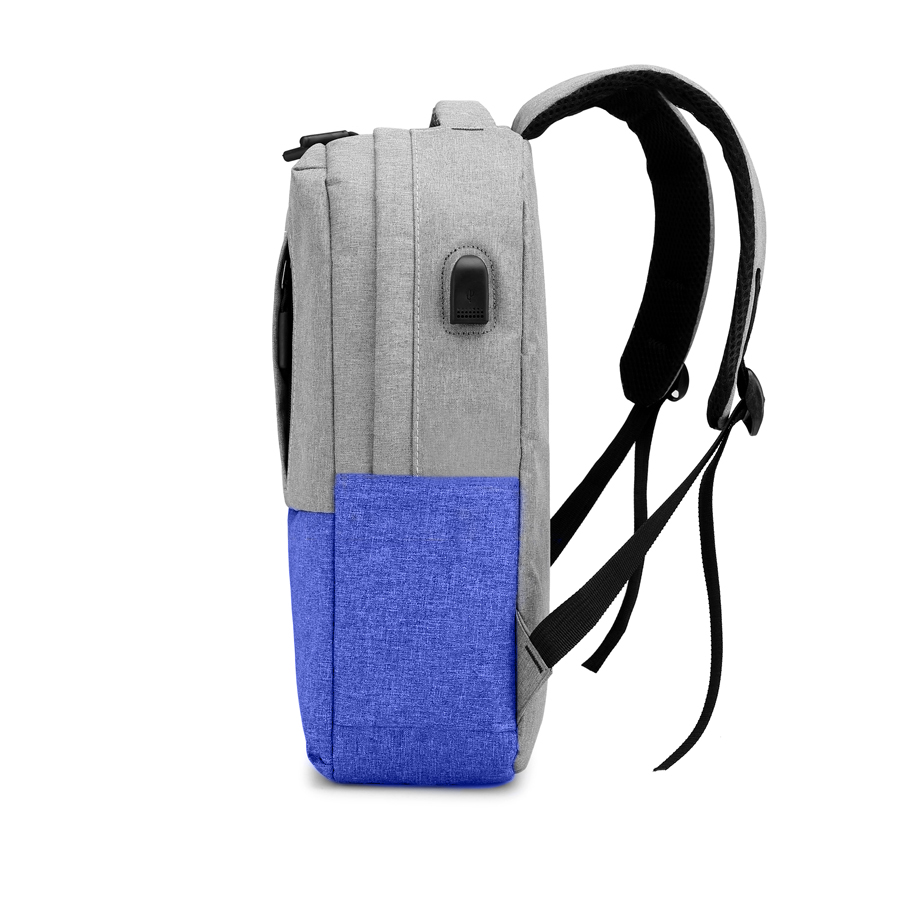 На передней стенке два кармана карман на скрытых молниях. Сбоку два открытых кармана и USB-разъем с проводом для подключения внешнего аккумулятора.