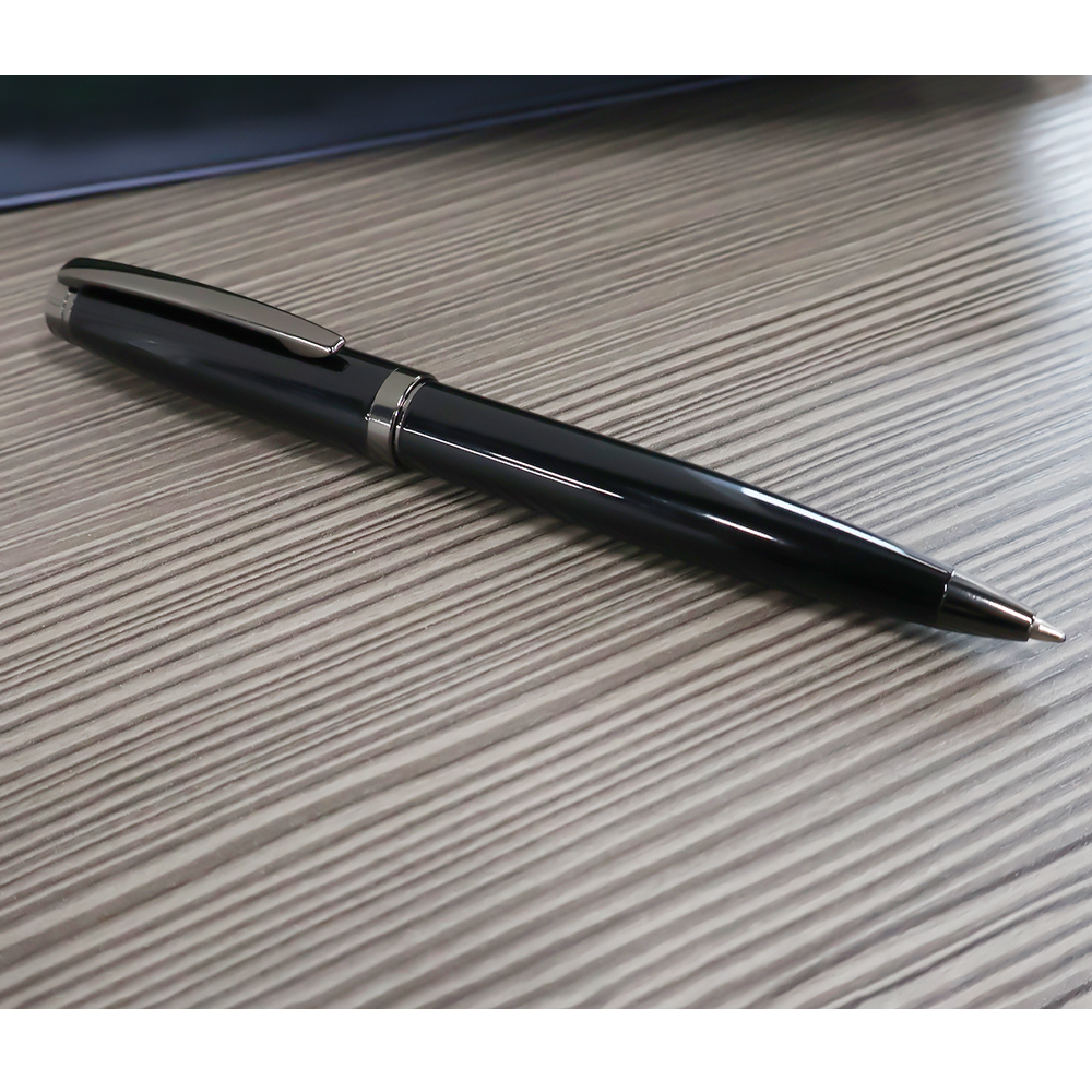 Наша Бетти — подарок для любителей более увесистых и солидных форм. Общий вес ручки — 33 грамма! У нашей красотки поворотный механизм, покрытый глянцем корпус из нержавеющей стали, стержень Паркер 0,7 мм с синими чернилами. Элементы ручки: клип, кольцо и дюбка покрыты ган-метал краской. Ручку приятно держать в руке и демонстрировать публике.