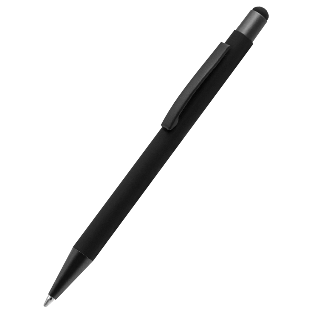 Бархатистая на ощупь ручка Story сотф-тач сделана из металла. Синие чернила, имеет стилус для взаимодействия с портативными устройствами. Толщина пишущего узла 1 мм, длина письма рассчитана на 700 м.