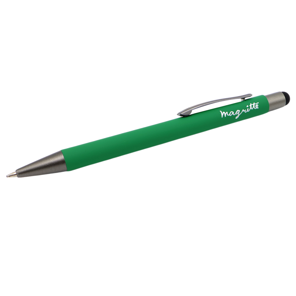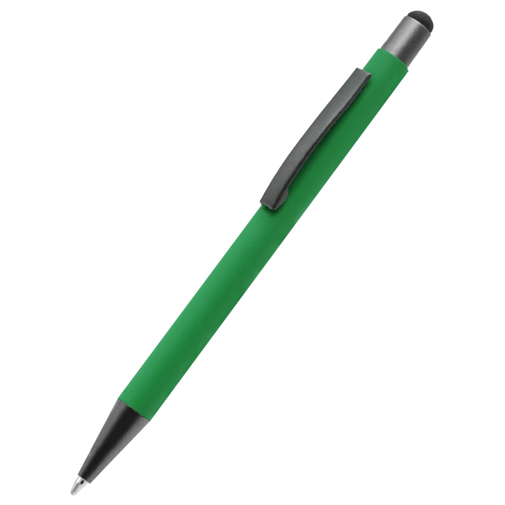 Бархатистая на ощупь ручка Story сотф-тач сделана из металла. Синие чернила, имеет стилус для взаимодействия с портативными устройствами. Толщина пишущего узла 1 мм, длина письма рассчитана на 700 м. Цвет по PANTONE® (максимально приближен): 356 C.
