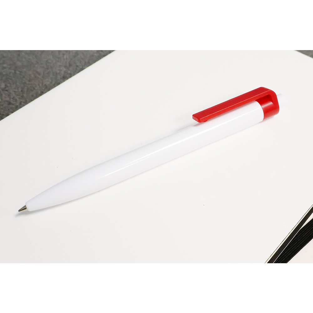 Отличная недорогая ручка в пластиковом корпусе с матовым клипом. Толщина письма — 0,7мм, синие чернила, нажимной надёжный механизм.