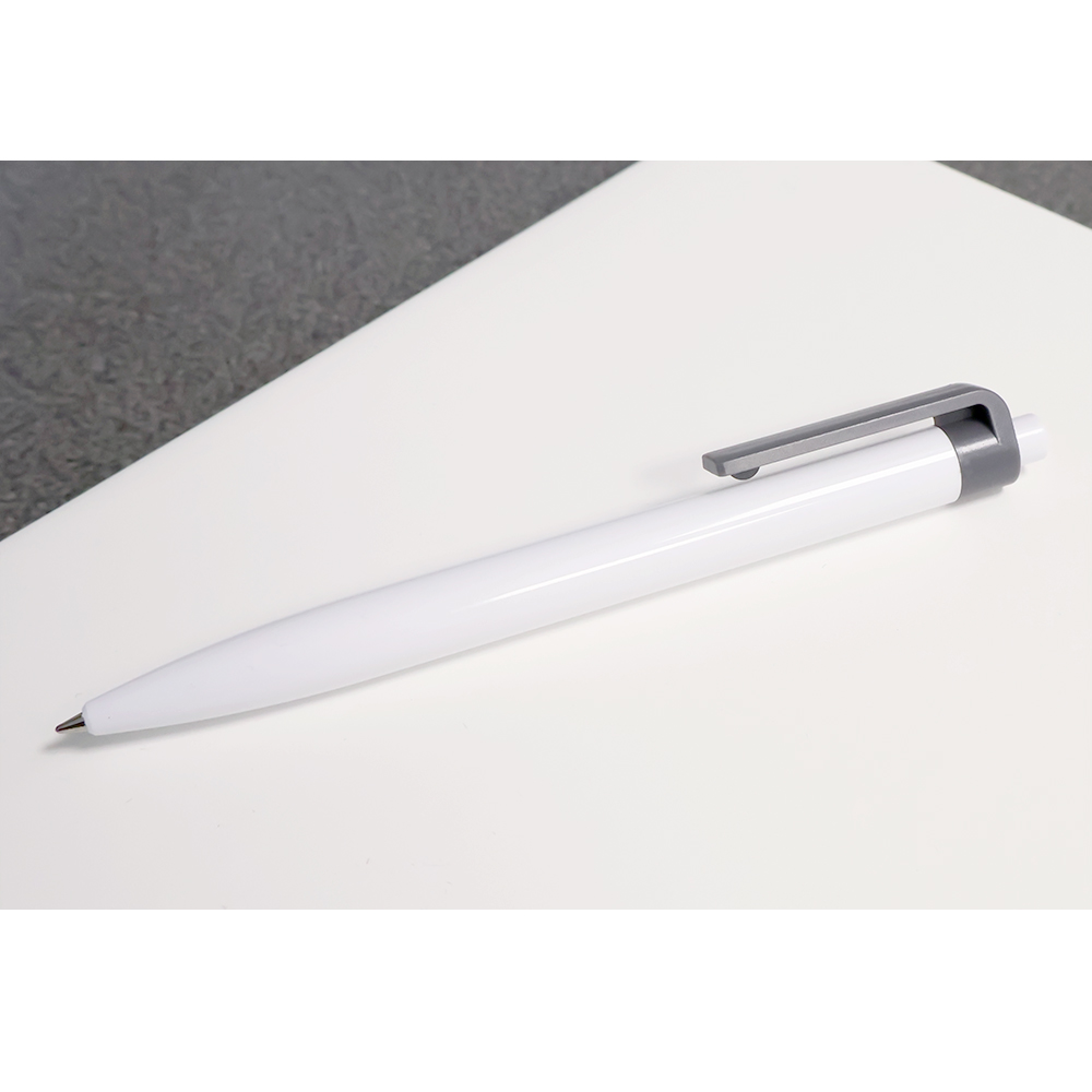 Отличная недорогая ручка в пластиковом корпусе с матовым клипом. Толщина письма — 0,7мм, синие чернила, нажимной надёжный механизм.