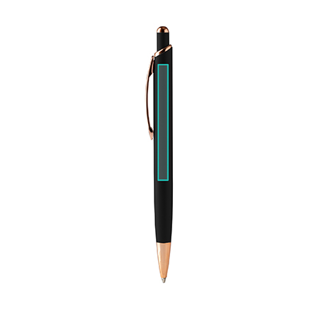 Шариковая ручка с матовой металлической структурой и деталями с медной отделкой.