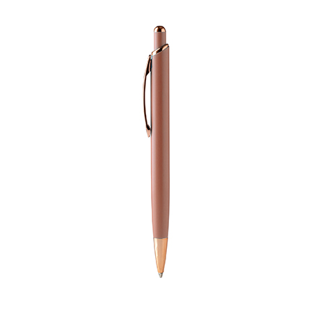 Шариковая ручка с матовой металлической структурой и деталями с медной отделкой.