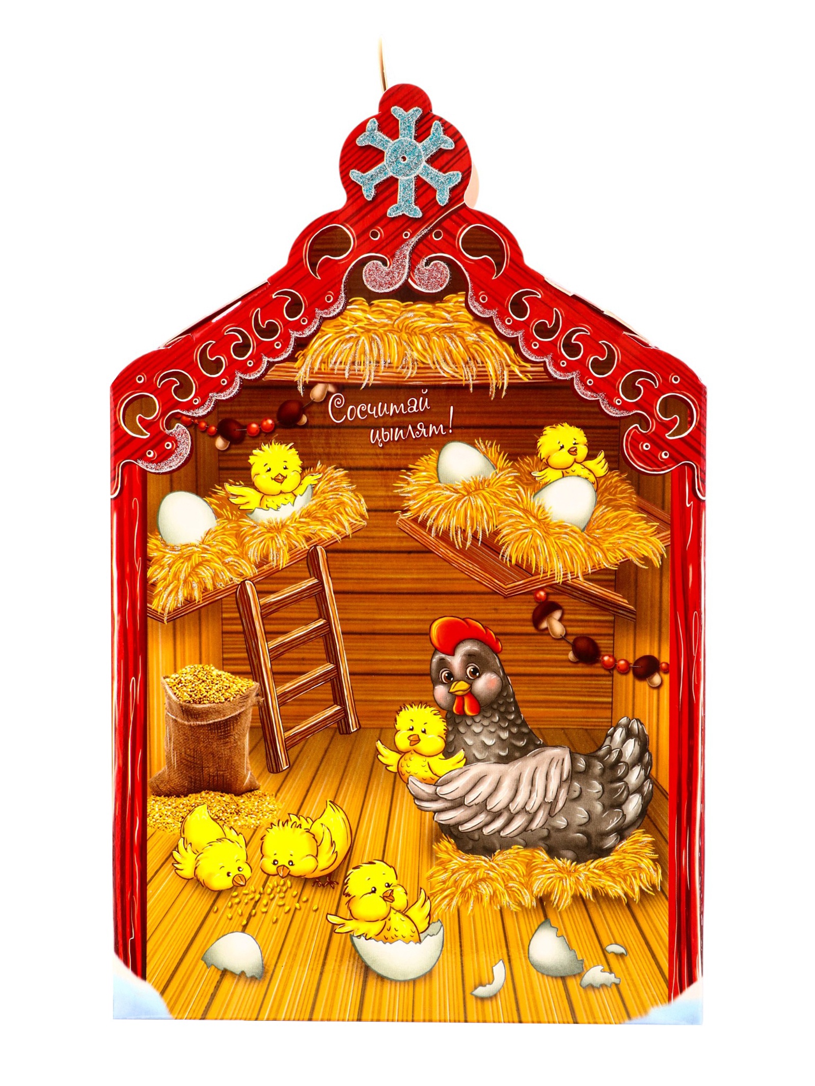- Картонная коробка в виде теремка: Упаковка стилизована под сказочный домик. После использования коробку можно применять для хранения мелких игрушек или как основу для детских игр.